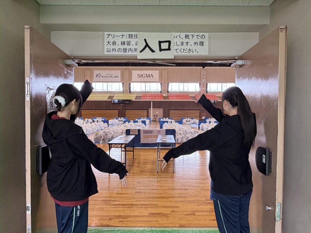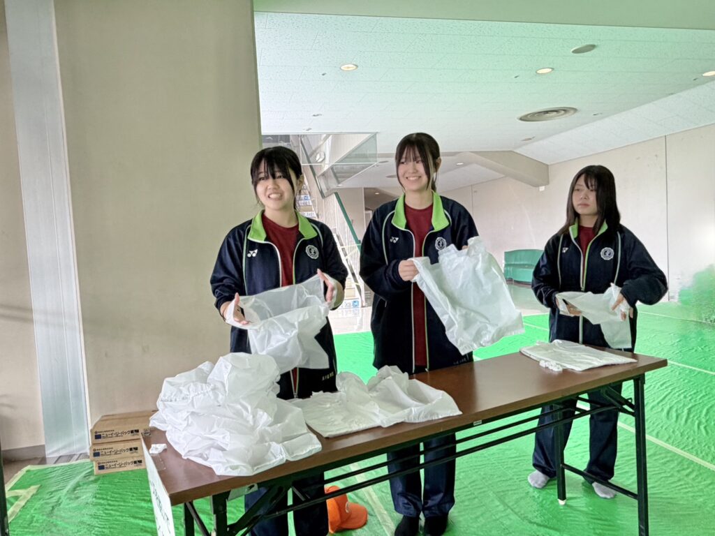 本校生徒は、体育館での荷物管理や巡回を担当し、選手の皆さんのレースを陰でサポートをする役割を担いました。