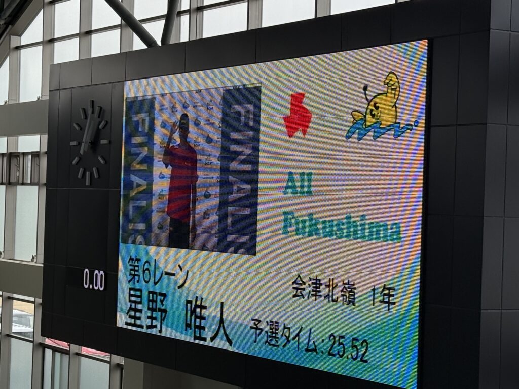 1年C組の星野唯人君が50m自由形に出場し25.20秒を記録し4位となりました。