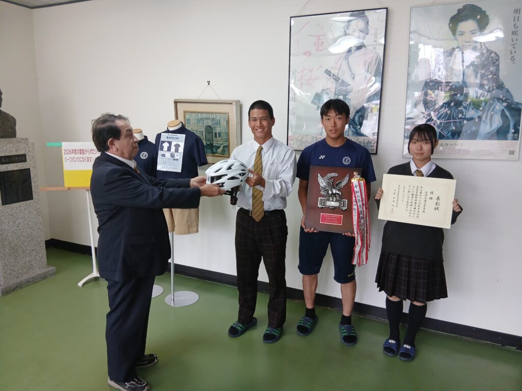 外部の方から、野球部が自転車で河東球場まで移動するなんてすごいという言葉が多く上がっており、会津北嶺祭では会津若松警察署の署員の方からヘルメットの重要性のお話があり、校長個人が野球部の日頃の努力を讃えてプレゼント。