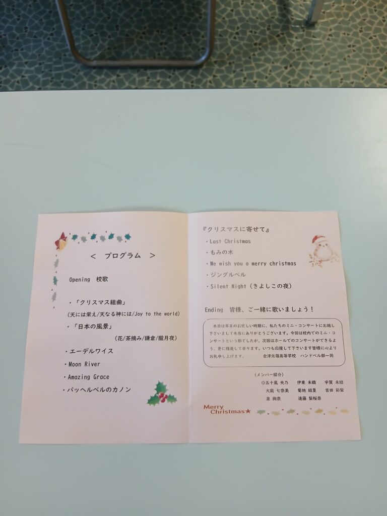 午後3時30~外部の方を、お招きして、ハンドベルの演奏会を行いました。
