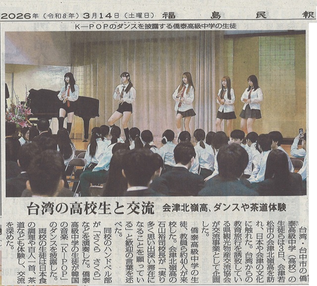 台湾の高校生と交流 会津北嶺高、ダンスや茶道体験(福島民報)